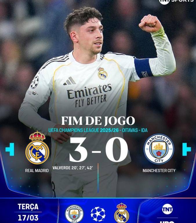 “半场帽子戏法?皇马3-0曼城?这剧本谁敢提前写?”